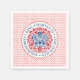 Red paper napkins showing the official Coronation Emblem of King Charles III 2023