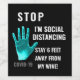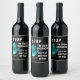 Designed with bright turquoise hand print on left area and funny phrase "Stop I'm social distancing Stay 6 feet away from my wine" is in bold white lettering. Customisable black background. Great humour for any occasion parties.