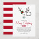 Show your appreciation to your hospital employees or medical office staff with this Corporate Business Healthcare Logo Christmas 2023 Holiday Card. It has a modern fun design with a reindeer face wearing a face mask and has a stethoscope hanging from the antlers. Your company logo is on the reindeer's mask. The background is white on the front. Red and white horizontal stripes are on the back side. The text is in matching red hand lettered script mixed with simple easy to read lettering. The year "2023" can be changed to any year. A template has been made available to fill in your company details and customise the card.