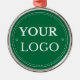 Add your corporate logo to this simple round Christmas ornament in a modern minimalist style. Design features a custom business logo on a festive green background. Perfect holiday promotional gift favour. Easy to customise. Get yours today!