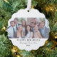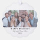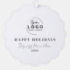Spread holiday cheer with this elegant corporate business card that doubles as a Christmas ornament. The front features a clean white rectangle at the bottom, perfect for displaying your festive message alongside a staff photo. On the back, your company logo adds a professional touch, making it a thoughtful and practical keepsake. The design combines bold serif fonts with script handwriting for a sophisticated look. Two customisable photo spaces allow you to showcase your team, with a transparent white wash giving the images an ethereal feel. If you prefer a brighter look, you can easily remove the white layers in the editing tool. Unique Corporate Business Happy Holidays Christmas Ornament Card With Logo Staff Photo