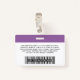 Easily personalise this Custom Employee Name Badge with Photo, Scan Bar Code and business company logo, featuring persons name, occupation, optional identity bar code, with metal clip included. A branded badge useful to identify staff, visitors or guests, docror, nurse and medical professions. A simple business design with large photo in lavender purple and white fully customisable in front and back sizes, in any colour background, sans-serif basic and modern fonts and a professional and clear look. An useful tool for corporate events, reunions, renews and celebrations. Create more corporate photo badge identification card in different colours for any category you need to identify: staff, visitors or guests. Avaiable with or without lanyard, metal clip or with retractable. No minimum order.