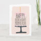 Happy Birthday! A cute corporate business hand drawn birthday cake with pink icing and a candle, the cake rectangle color is customizable The pink frame color is fully editable. With a modern brush style calligraphy typography.