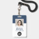 Blue Corporate Logo Photo Barcode Custom Employee ID in Navy Blue and White. Enhance workplace security and identification with this custom employee ID badge, designed for both function and style. Featuring a clean blue and white background, this badge includes space for your company logo, employee photo, name, and title—making it easy to identify team members at a glance.