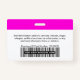 Easily personalise this Custom Horizontal Employee Name Badge with Photo, Scan Bar Code or Qr code and business logo. A simple business design in pink and white colours fully customisable in front and back sizes, sans-serif basic and modern fonts and a professional and clear look. These standard security id name tags badges are avaiable with lanyard, metal clip or with retractable. You can personalise your id badge cards choosing any background colour and any font style with Graphic Design editor by clicking on customise further. No minimum order.