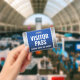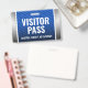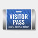 A modern design featuring white, all capital sans serif lettering set on royal blue, worn steel, and white-to-black gradient backgrounds adds professionalism and ease of readability to this visitor or guest pass. Customise with business, company, division, workplace, and/or department name. Font type and colours can be modified as desired. Reverse shows identical design.