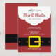 Custom Corporate Secret Santa Gift Exchange Party invitations. Featuring a cute Santa Claus outfit with beard and buckles.