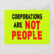 Corporations are NOT PEOPLE Protest Tshirt Postcard