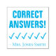 This fun rubber stamp design features the positive feedback message "CORRECT ANSWERS!" and a personalised teacher's or educator's name. It could be used by a school teacher, educator, or tutor when marking assignments, to acknowledge that a student has done well.