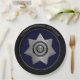 Correctional Officer Badge-Silver-02-PAPER PARTY PLATES-The badge is created in silver or gold and black with a small touch of blue. A decorative seven (7) point silver/gold star forms the badge. Text curving the top of the badge reads: DEPARTMENT OF CORRECTIONS. Text curving the bottom reads: CORRECTIONAL OFFICER. These words sit on a solid black ring. More silver/gold decorates the badge throughout. An eagle emblem with silver or gold stars sits in the centre. Smaller text in the centre reads: Seal of the State. The badge is not state specific. Under the badge is a solid blue centre. A blue/black outer rim with silver/gold text curving around the top that reads: CORRECTIONAL OFFICER. The Correctional Officer's badge is available in silver or gold with a blue or black background. Coordinating Zazzle gifts and party supplies is available. Choose any size of Zazzle paper plates.