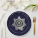 Correctional Officer Badge (Paper Party Plates)-is a graphic art design. The badge is created in silver (or gold) and black with a small touch of blue. A decorative seven (7) point silver/gold star forms the badge. Text curving the top of the badge reads: DEPARTMENT OF CORRECTIONS. Text curving the bottom reads: CORRECTIONAL OFFICER. These words sit on a solid blue/black ring. More silver/gold decorates the badge throughout. An eagle emblem with silver/gold stars sits in the centre. Smaller text in the centre reads: Seal of the State. The badge is not state specific. Under the badge is a solid blue centre. A blue outer rim with silver/gold text curving around the top that reads: CORRECTIONAL OFFICER. This badge design comes in silver or gold with assorted background styles. The design is also available with a photo insert in my other zazzle stores.