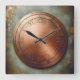 copper patina, corroded metal, copper round plate, industrial style wall clock roman numerals