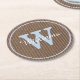 Stylish pulp board paper coasters done in a brown corrugated cardboard look, with graphics of a light blue dotted circle around the outside edge. Personalise the large light blue one letter monogram and white script text to suit your needs. Great for anytime use and makes a nice gift idea.