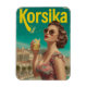 This stylish vintage poster captures the relaxed glamour of Corsica in the 1950s. A fashionable woman in retro sunglasses and a classic summer dress lounges by the seaside, holding a refreshing drink as the Mediterranean sparkles in the background. With warm, sun-faded colours and nostalgic textures, the artwork evokes the charm of mid-century island holidays — perfect for vintage fashion lovers and travel art collectors.