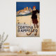 Poster showing a woman posed on ski slopes at Cortina d'Ampezzo.