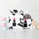 Cool wrapping paper with a makeup pattern of cosmetics products in black, pink, and white. Great for a sweet sixteen party!