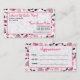 A cosmetologist / salon business card featuring a background design consisting of illustrations of purses, lipstick, perfume bottles, pink diamonds, and cat eye sunglasses. Personalise the front with your business contact information. Use the back to write appointment information.