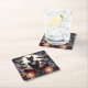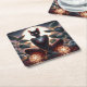 Cosmic Black Cat with Glowing Eyes Surreal Digital Square Paper Coaster