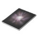 This cool background artwork features the dark inky blackness of space. Clouds and streaks of light and colors: pinks, blues, violets emanate out from a central source with grainy textures. An abstract atristic representation of a supernova, this design is perfect for the fan of outer space and science fiction.