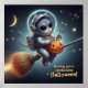 Cosmic Cat Astronaut: Magic and Space Adventure on a Witch's Broom. This design showcases a cute astronaut cat sipping pumpkin tea on a witch's broom, perfect for those who love whimsical, Halloween-themed space adventures filled with charm, magic, and mystery.