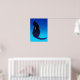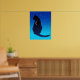 Poster in a silhouette of an elegant sitting cat patterned with a starry sky and crescent moon, on an evening blue, starry background - a celestial- themed gift for cat lovers