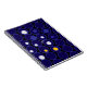 Dive into a universe of creativity with this mesmerising spiral notebook, featuring a stunning blue, white, and yellow circular design.