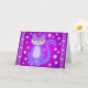 A smiling kitty cat with green eyes, lots of lucky stars, gradient magenta to purple hues background with light pink trim, original cartoon artwork. These cards are blank inside so you can write your own message!
