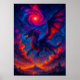 Cosmic Dragon Flying Through Fiery Sky Fantasy Poster