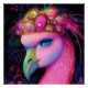 This stunning fantasy artwork features a regal pink flamingo adorned with a radiant cosmic crown of glowing orbs and feathers, set against a deep, starry background. Bursting with neon colours and magical details, this vibrant piece perfectly blends wildlife with celestial imagination—ideal for fantasy lovers, bird enthusiasts, and vibrant decor collectors.