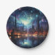 Cosmic Futuristic Metropolis Skyscraper Paper Plate