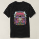 This unique t-shirt design features a colourful and psychedelic garden scene, with a spaceman in the centre. The garden is filled with various mushrooms and flowers, creating a vibrant and eye-catching pattern.