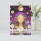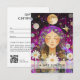 Beautiful woman, mystic woman illustration, moon, stars, daisy, purple-pink, gold business gift certificate.