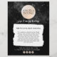 A watercolor illustration of an amber gold moon is surrounded by a sky of stars on this black and white flyer design by 1201AM. Your name or business name is centred on the moon for a unique logo. The double-sided flyer provides plenty of space on the backside to promote your classes, services, or for other uses. This ethereal design was created for yoga instructors, life coaches, astrologers, healers, acupuncturists, reiki and energy workers, or any profession looking for a creative design for their business. Great to use for price lists, service menus, open houses, special events and more. Original art and design © 1201AM Design Studio | www.1201am.com