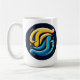 Embrace the dynamic balance of energy with our captivating Cosmic Harmony Mug. This eye-catching design features a mesmerising swirl of radiant gold and calming turquoise, set against a deep navy backdrop adorned with twinkling stars. The intertwined shapes create a powerful symbol of unity and balance, reminiscent of cosmic forces in perfect harmony.