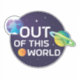 Our Cosmic Illustration Out of this World Outer Space Clipart Cute Earth Clipart design features three cartoon planets surrounded by stars and text.
