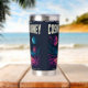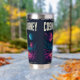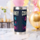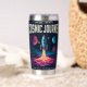 Embark on a daily adventure with this stunning, vivid cosmic art design. Featuring a classic rocket blasting off through a fiery cloudscape, the illustration uses an eye-catching palette of neon pinks, purples, and blues that pop against the dark starry background. The bold typography declares "COSMIC JOURNEY" and "EXPLORE • INFINITY," capturing the spirit of space travel and the unknown. This insulated tumbler is perfect for science fiction fans, astronomers, dreamers, or anyone who appreciates maximalist, high-energy artwork.