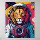Cosmic Lion – Astronaut Helmet Poster | Bold Space
