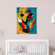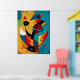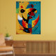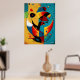 A vibrant geometric abstract of orbiting circles and sleek lines in teal, tangerine, red, and yellow. The design channels mid-century modern and Bauhaus sensibilities—clean shapes, strong colour blocks, and lively motion. Perfect for contemporary interiors, creative studios, and gallery walls. Pair with minimalist furniture and warm lighting for a striking focal point.