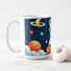 Set against a deep navy night sky sprinkled with twinkling stars and colorful planets, this artwork feels playful and dreamy at the same time. It’s perfect for kids who love space, cozy nurseries, baby shower gifts, or anyone who wants a cute and uplifting galaxy aesthetic on their everyday essentials. On mugs, the shiny porcelain effect and 3D relief create an eye-catching statement piece. On fabrics, the rich colors, depth and perspective turn blankets, pillows and quilts into a cuddly little universe.