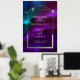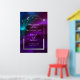 Cosmic Purple Teal Sun Moon Stars Welcome Sign Celestial Cosmic Galaxy Space Wedding Welcome Sign Poster features silver sun, moon and stars with a silver frame on colourful mystical purple, teal and blue cosmic background. Inside the frame is your custom text in elegant white calligraphy script. Designed for you by ©2024 Evco Studio www.zazzle.com/store/evcostudio