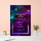 Cosmic Purple Teal Sun Moon Stars Welcome Sign Acrylic Welcome Sign features silver sun, moon and stars with a silver frame on colourful mystical purple, teal and blue cosmic background. Inside the frame is your custom text in elegant white calligraphy script. Designed for you by ©2024 Evco Studio www.zazzle.com/store/evcostudio