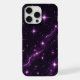 A long streak of radiant purple cuts through the celestial canvas, adorned with sparkling stars that illuminate the darkness. Set against a backdrop of deep black, this mesmerising scene captivates with its celestial allure.