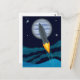 Scene depicting a Rocket Ship taking off with a Cosmic background of Nebulae, Moons and Planets.