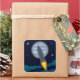 Cosmic Rocketship Scene Square Sticker
