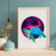 Dive into a dreamy mix of ocean and cosmos with this watercolor sea turtle floating through a galactic night sky. The vibrant blues and purples make it a captivating piece for ocean lovers, dreamers, and space enthusiasts alike — a perfect balance between serenity and wonder.