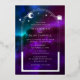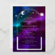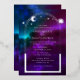 Cosmic Purple Teal Blue Silver Sun Moon Astronomy Space Foil Foil Wedding Invitations features sun, moon and stars with a silver frame on a colourful purple, teal and blue cosmic background. Inside is your custom wedding invitation information. Designed for you by ©Evco Studio www.zazzle.com/store/evcostudio