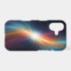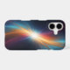 Protect your essential everyday technology while carrying a breathtaking piece of the universe with you everywhere you go. This premium tough phone case acts as the absolute perfect canvas for this vibrant abstract cosmic artwork. Centered perfectly on the back of your device, the intense, glowing starburst sends sweeping waves of cyan, yellow, and magenta nebula gas across a deep, dark starry background, turning your phone into a striking, pocket-sized portal to another galaxy.