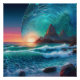 Experience the allure of the ocean at twilight with this multi-coloured seascape abstract painting, a surreal sunset captured in opal, jade, and iridescent hues.