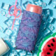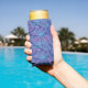 Cosmic Teal-Purple Feather Swirl Pattern Seltzer Can Cooler