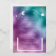 Cosmic Teal Purple Silver Sun Moon Astronomy Space Foil Wedding Invitations features sun, moon and stars with a silver frame on a colourful purple, pink and teal green background. Inside is your custom wedding invitation information. Designed for you by ©Evco Studio www.zazzle.com/store/evcostudio